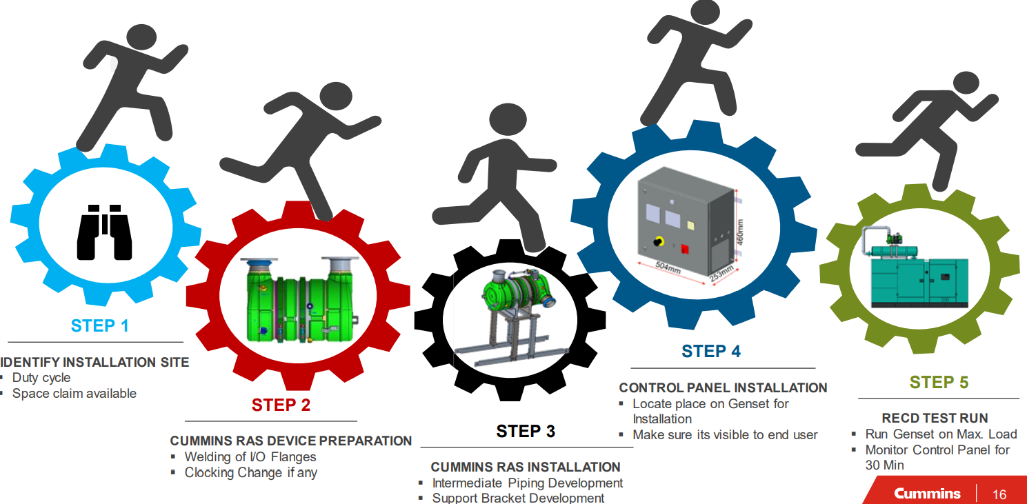 Cummins RAS device can be installed on Diesel Genset as an effective solution to reduce harmful gases from the exhaust gas of a DG. Cummins RAS has a particulate mass emission reduction efficiency, which qualifies it to be certified as meeting the classification class as defined in this regulation.